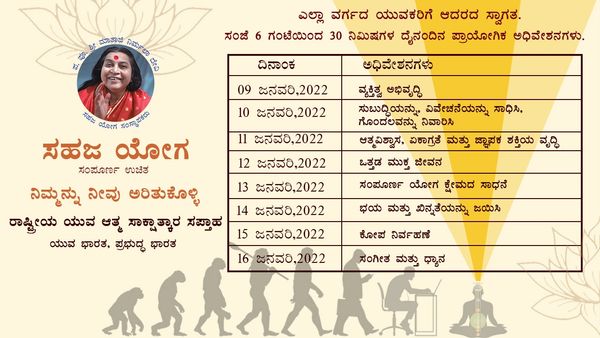 ಇದು ಸಹಜ ಯೋಗ ಧ್ಯಾನದ ಪರಿಚಯದ ಅಧಿವೇಶನವಾಗಿದೆ.